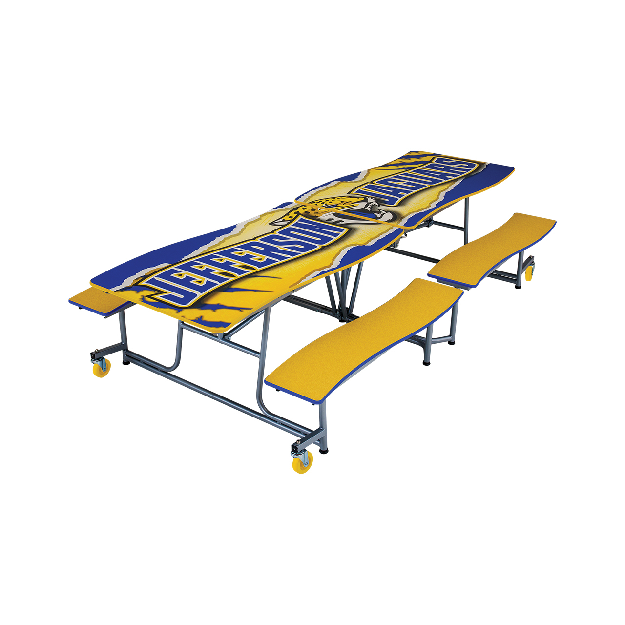 AmTab's Ocean Wave Mobile Bench Cafeteria Tables are used every day throughout the world in multi-purpose environments. Our high-quality state-of-the-art tables are safe, durable, easy to operate, and a great long-term value. All AmTab mobile cafeteria tables are 100% Made in the USA, UL certified, ANSI/BIFMA certified, MAS Green certified, and have a Lifetime – Limited Lifetime Warranty. Our tables are perfect for heavy-use and heavy-turn settings providing years of trusted service.