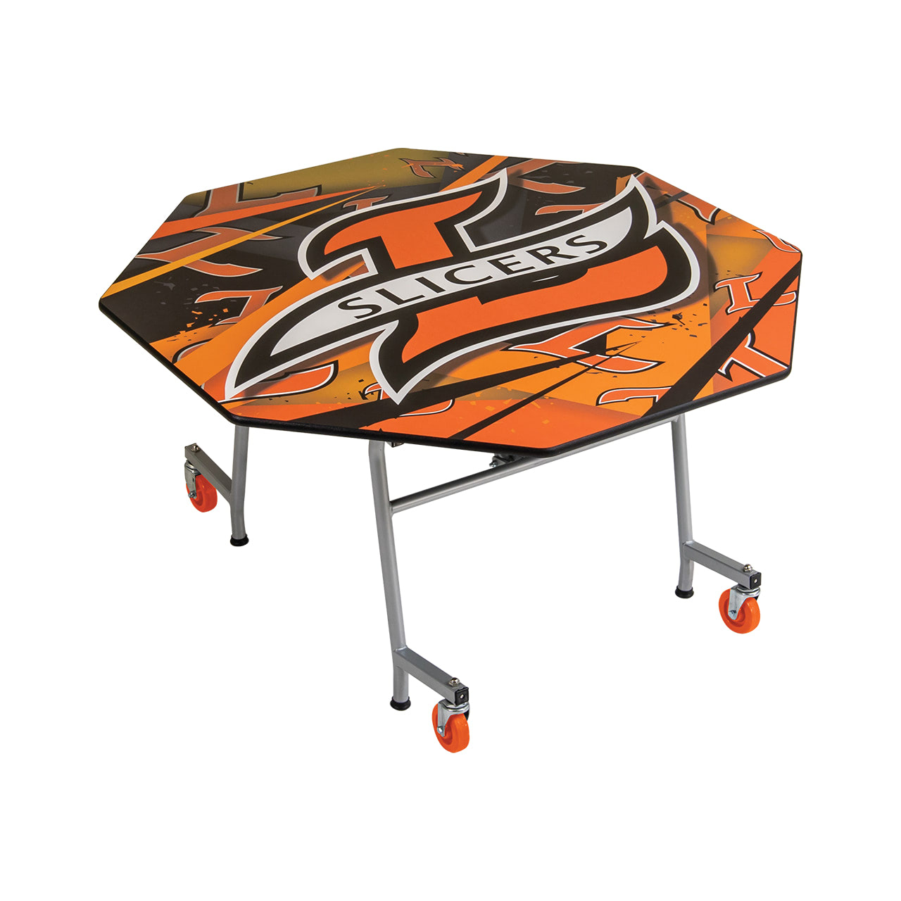 Octagon Mobile E-Z Tilt Table 60" Diameter, tilt straight up for easy and compact storage.