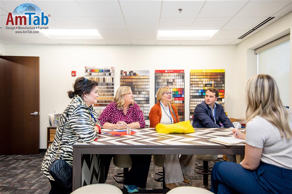 ✅Exploring American-made food court furniture alongside vibrant signage and decor